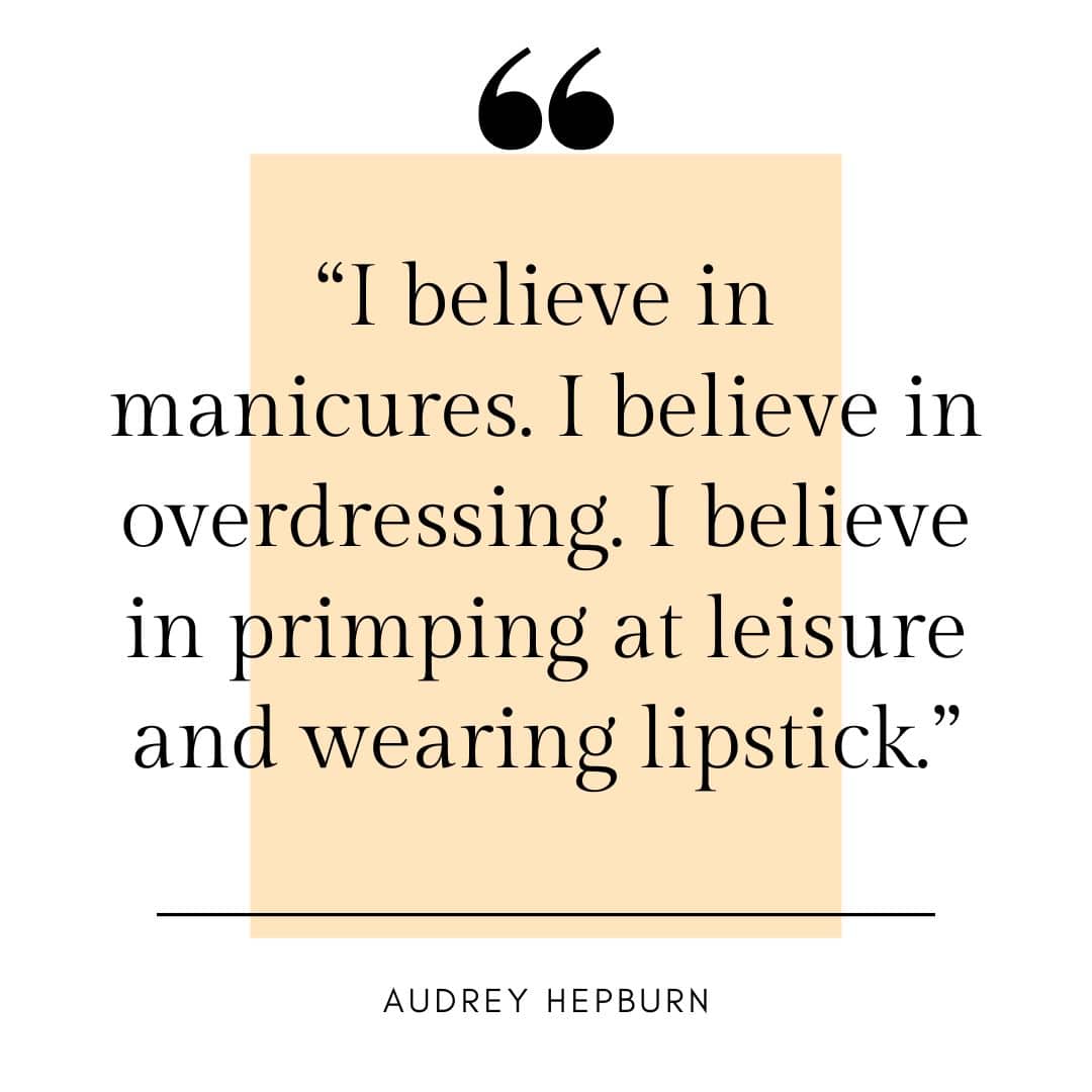 - “I believe in manicures. I believe in overdressing. I believe in primping at leisure and wearing lipstick.” — Audrey Hepburn