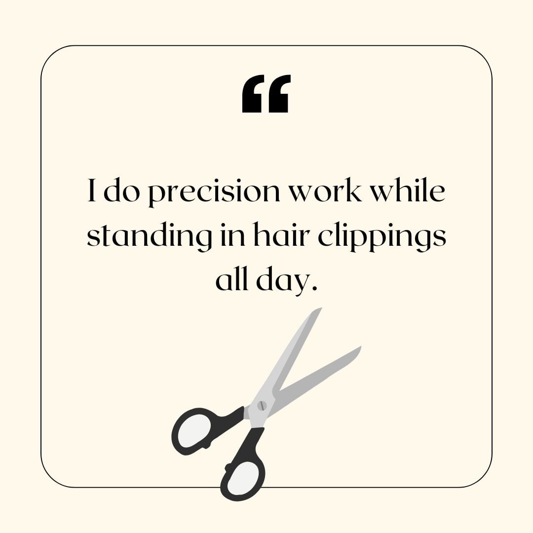 - “I do precision work while standing in hair clippings all day.”