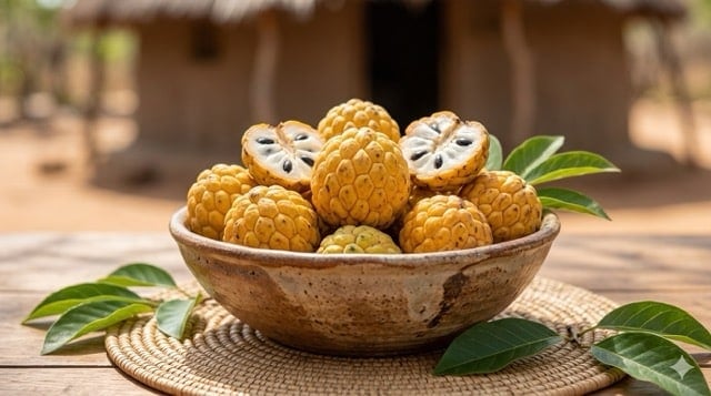 The less common Utu fruit is native to West Africa. It has a mild flavor, making it more versatile in the kitchen than you might expect. You will often see it prepared alongside other ingredients rather than eaten on its own.