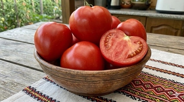 This tomato is deep red and large, heart-shaped. It also has dense, meaty flesh with a hint of sweetness that complements fresh foods and sauces. These tomatoes are native to Yalta, Ukraine.