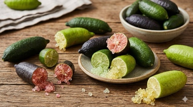 This long, narrow fruit comes from the rainforests of eastern Australia. And inside holds small, bead-like pulp often called citrus pearls or caviar. These burst with a fresh, tangy flavor when you eat them. You can use it in drinks, desserts, or as a garnish for seafood. It also works well in chutneys and marmalades.