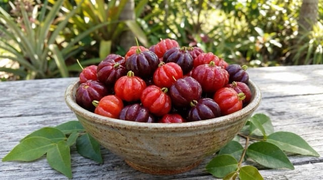 Florida cherry, also known as Surinam Cherry, among other names, is easy to recognize by its unusual shape. The fruit has deep ridges, almost like a tiny pumpkin. It starts green and turns bright red or even dark purple as it ripens. And when you bite into it, the flesh is soft, juicy, and slightly sticky. The flavor can be sweet-tart, but it sometimes has a subtle earthy or resin-like note.