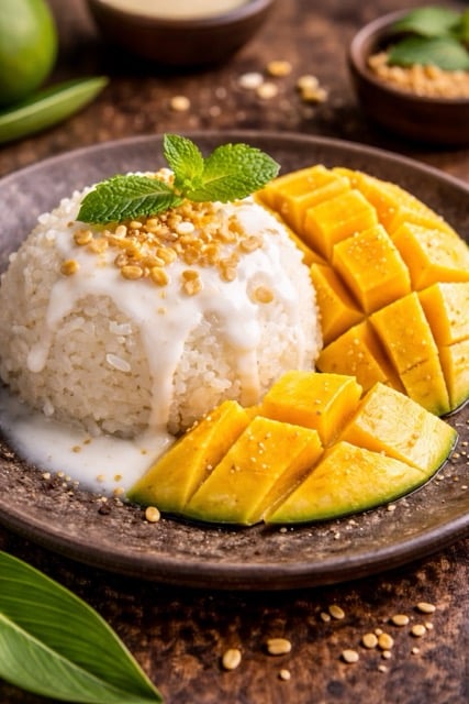 When mango season arrives, Southeast Asia, and especially Thailand, delights in its favourite dessert, the mango sticky rice. It’s really easy to make; you just need to soak and steam glutinous rice, then mix it with sweet coconut milk. Finally, pile it up next to juicy mango slices. That mix of creamy, chewy rice and fresh fruit creates an unbeatable texture.