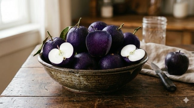 Grown at high altitudes in Nyingchi, Tibet, these fruits develop a deep, midnight-purple skin due to the intense ultraviolet light and drastic temperature swings in the mountains. While they look like something out of a dark fairy tale, the bright white flesh is surprisingly sweet, often containing a higher natural sugar content than your standard grocery store Gala. The trees are notorious for being difficult to cultivate, taking up to eight years to produce a single harvest that only lasts for a few months each year.