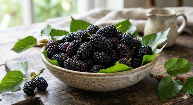 Wild blackberries grow aggressively along roadsides and forest edges, spreading through thorny canes that will take over your yard if you let them. The flavor varies with ripeness: underripe berries taste tart and sour, while fully ripe ones are intensely sweet.